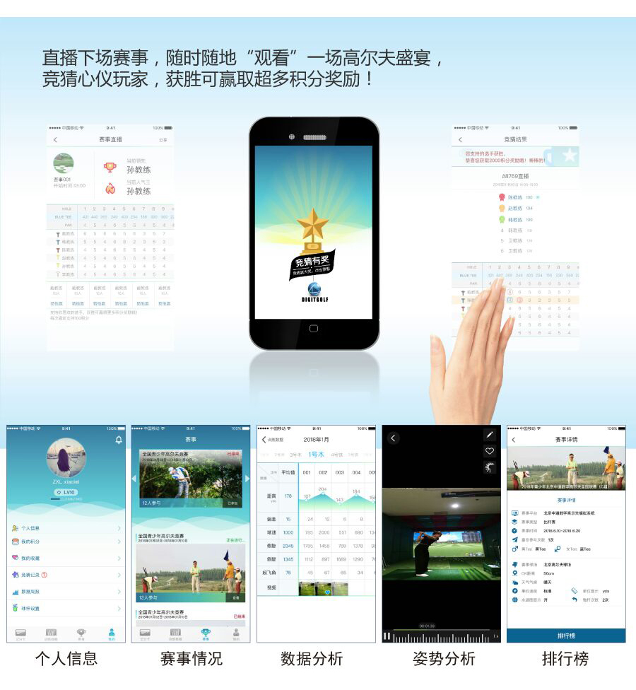 DIGITGOLF功能豐富,包含具有專業(yè)數(shù)據(jù)分析功能的練習(xí)場(chǎng)、效果逼真的比桿賽、功能豐富的在線對(duì)戰(zhàn)、定期舉辦的官方賽事等模塊,體驗(yàn)一站式互聯(lián)網(wǎng)高爾夫。通過微信二維碼掃描登錄,全程記錄視頻和數(shù)據(jù),還包含專業(yè)動(dòng)作分析、視頻回放等。