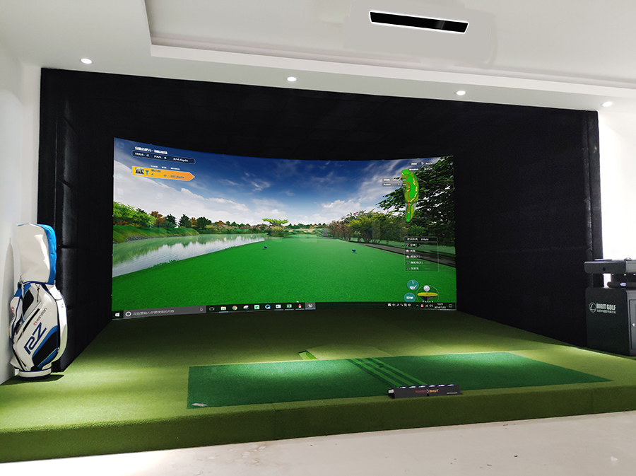 打球過程中,高爾夫球打到幕布上。