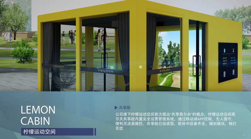 公司旗下檸檬運動空間提出“共享高爾夫”的概念,檸檬運動空間高爾夫共享艙內(nèi)置安全運營管理系統(tǒng),通過移動端APP控制,無人值守,便利靈活易操控。共享艙已經(jīng)成型,艙體中設(shè)備齊全,隨到隨玩,暢打無憂。