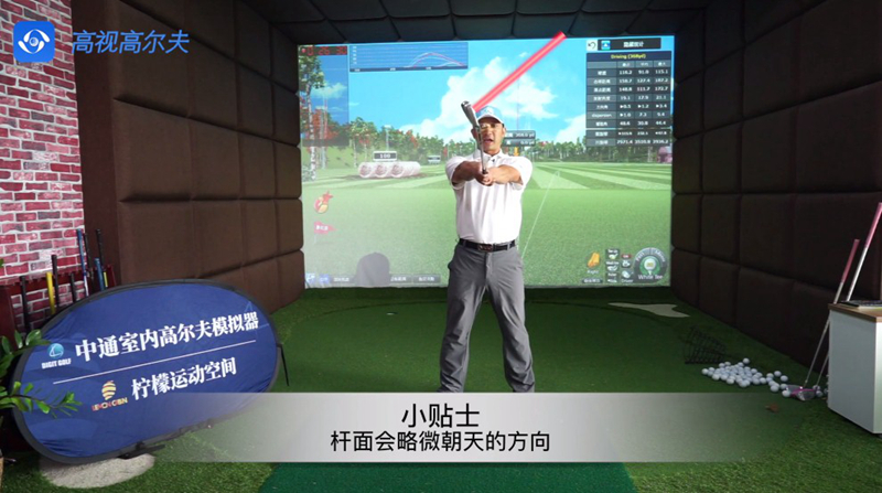 這時(shí)雙手舉起球桿,發(fā)現(xiàn)桿面略微朝天。