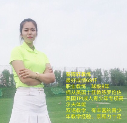 翟雨軒教練:最好成績(jī)69桿,職業(yè)教練、球齡8年,師從美國(guó)十佳教練羅倫佐,美國(guó)TPI青少年成人專項(xiàng)高爾夫體能,雙語(yǔ)教學(xué),具有豐富的青少年教學(xué)經(jīng)驗(yàn)。