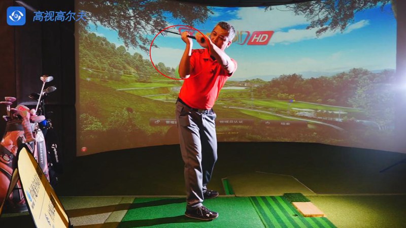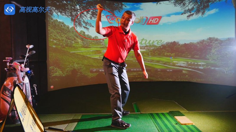 首先說一下這個(gè)動(dòng)作,兩只手不拿球桿做上桿動(dòng)作,與擊球時(shí)的手臂動(dòng)作一樣。