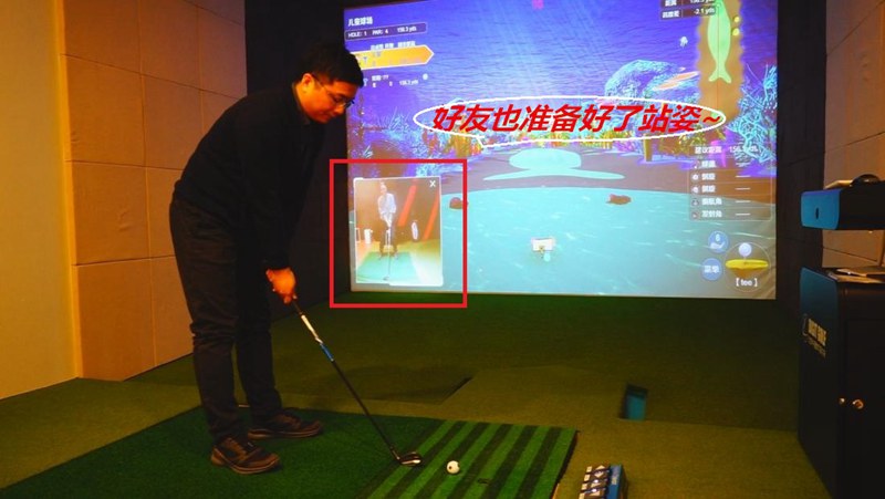 在對戰(zhàn)過程中,可實時獲取球友們的打球動態(tài),包括揮桿視頻,打球進展,實現(xiàn)“面對面”PK,打球時在屏幕的左下角可看到對戰(zhàn)好友的揮桿,下圖中紅色方框中即為遠程好友實時揮桿的展現(xiàn)。