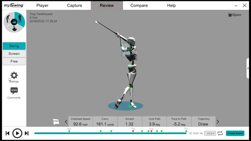 工作室引入MySwing,是一款無線全身3D多普勒追蹤儀,可捕獲身體動(dòng)作分析,配合測(cè)速儀,可捕獲桿頭數(shù)據(jù)以及球的飛行軌跡。MySwing是應(yīng)用于高爾夫球運(yùn)動(dòng)的專業(yè)研究工具。
