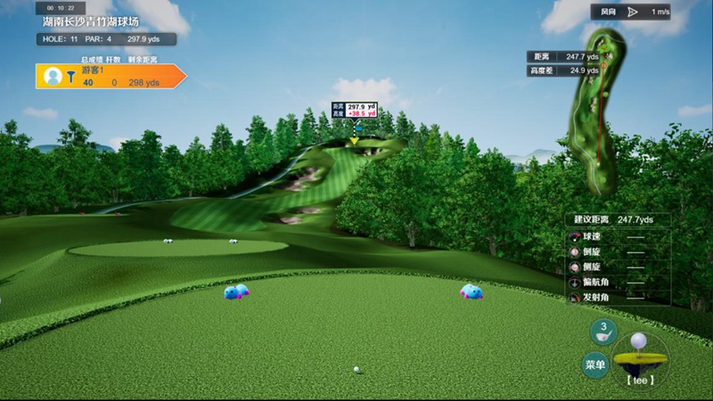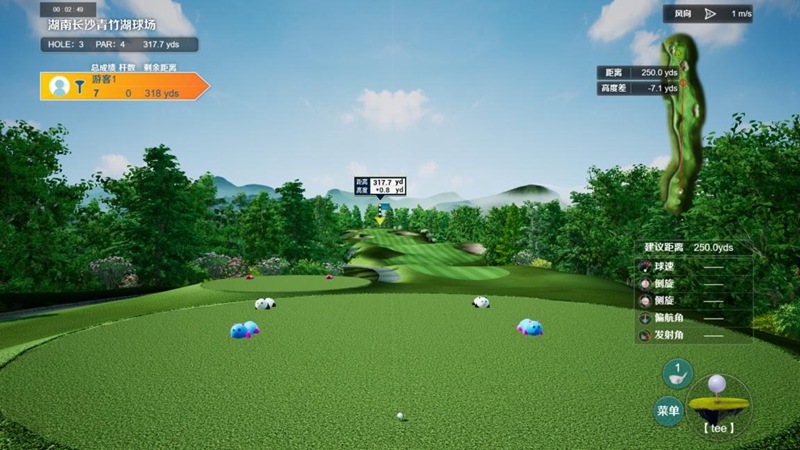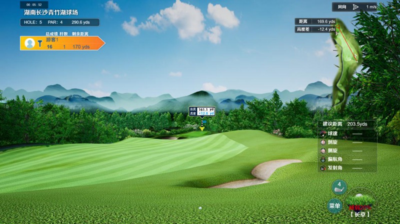 青竹湖高爾夫球場整體難度較大,具有一定的挑戰(zhàn)性,北京中通數(shù)字高爾夫的研發(fā)團(tuán)隊(duì)做了完美還原,球道、樹、水、沙坑、果嶺均完美呈現(xiàn),體驗(yàn)效果極好。