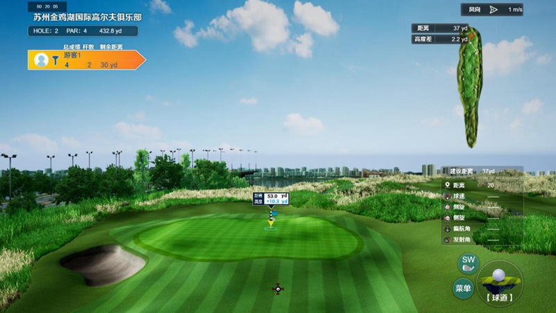 DIGITGOLF模擬器軟件選擇了森林9洞和海濱9洞組成18洞,球道、樹、水、沙坑、果嶺均1:1呈現(xiàn),球場(chǎng)周邊的高樓,橋梁,車輛都做了完美還原,如同身臨其境,毫不夸張的說,你與美麗的蘇州金雞湖球場(chǎng)就只差一套中通數(shù)字高爾夫模擬器了。