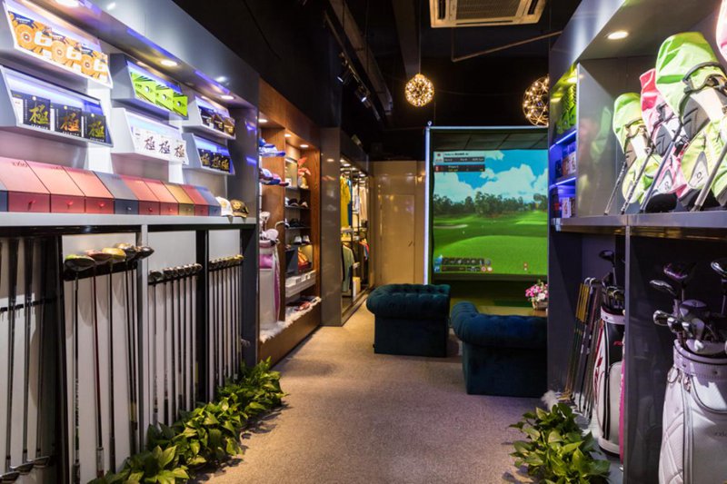 球具店引入高爾夫模擬器,亦可暢打放松休閑娛樂。