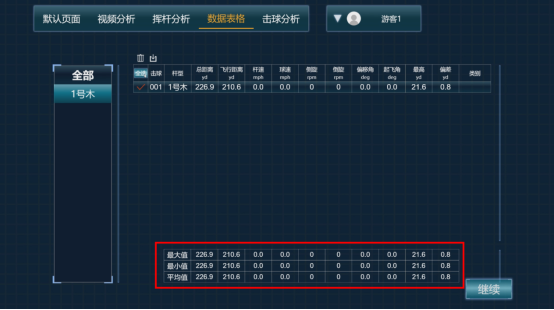 既然是我們小伙伴們不辭辛勞的成果,就要好好說道說道了。此功能名喚“數(shù)據(jù)表格”,顧名思義,有數(shù)據(jù)的表格,當(dāng)然重要的是這些數(shù)據(jù)了——擊球數(shù)據(jù),你所能用到想到的數(shù)據(jù)均包含在內(nèi),總距離、飛行距離、桿速、球速、側(cè)旋、倒旋、偏移角、起飛角……做記錄,做分析,便于查看,便于對(duì)比。