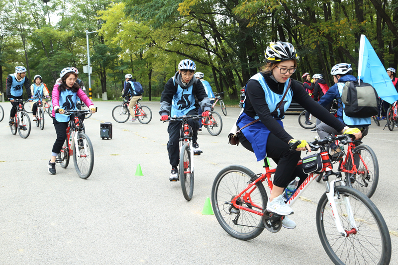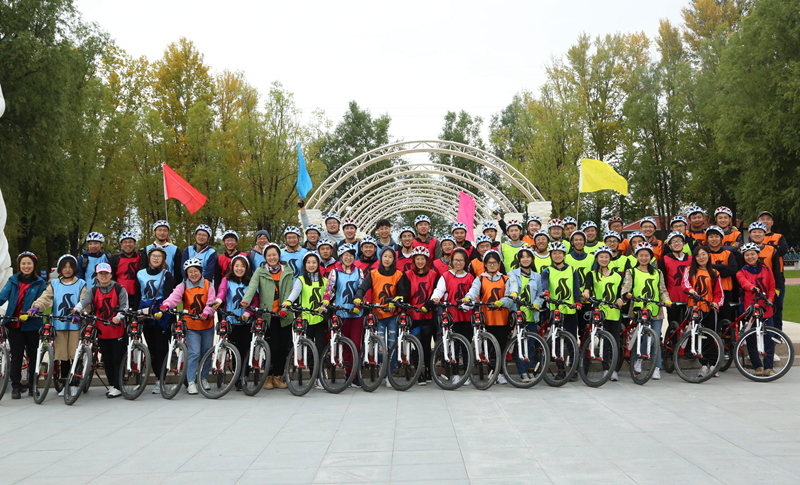 早上,乘大巴到達(dá)延慶媯河森林公園,隨后分組進(jìn)行了熱身運動,為我們的十公里騎行做準(zhǔn)備。