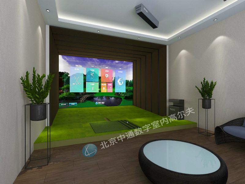 球場(chǎng)模擬包括軟件系統(tǒng)、幕布、長(zhǎng)草沙坑、動(dòng)感平臺(tái)和專(zhuān)用高爾夫Mark球。