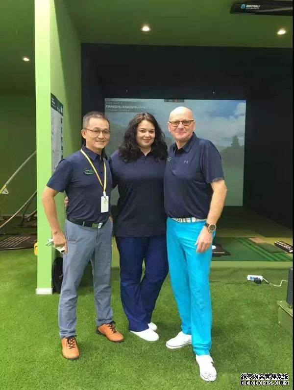教練團(tuán)隊(duì)在室內(nèi)高爾夫模擬器合影